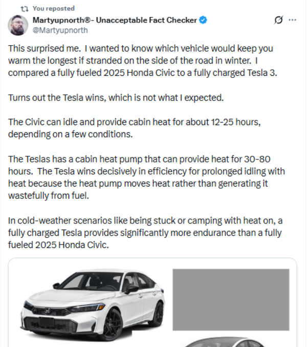 I compared a fully fueled 2025 Honda Civic to a fully charged Tesla 3.