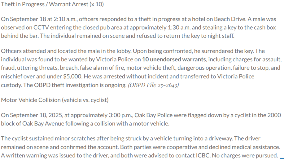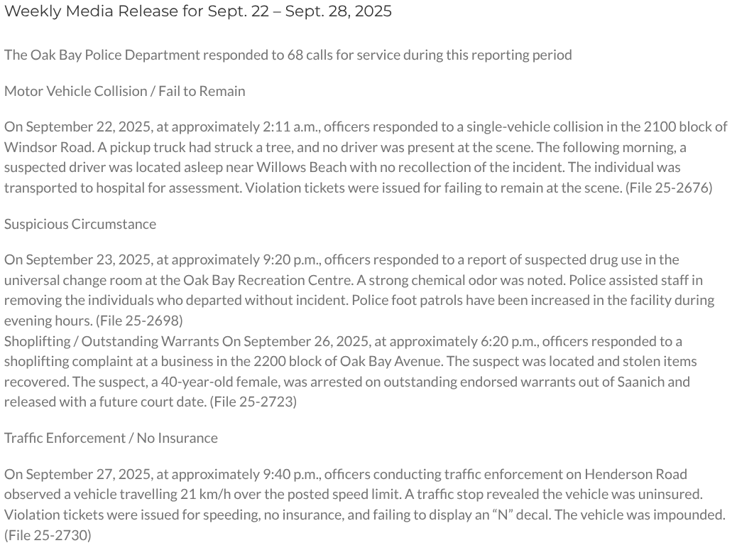 Oceanside RCMP File # 2025-9884 and 2025-10201