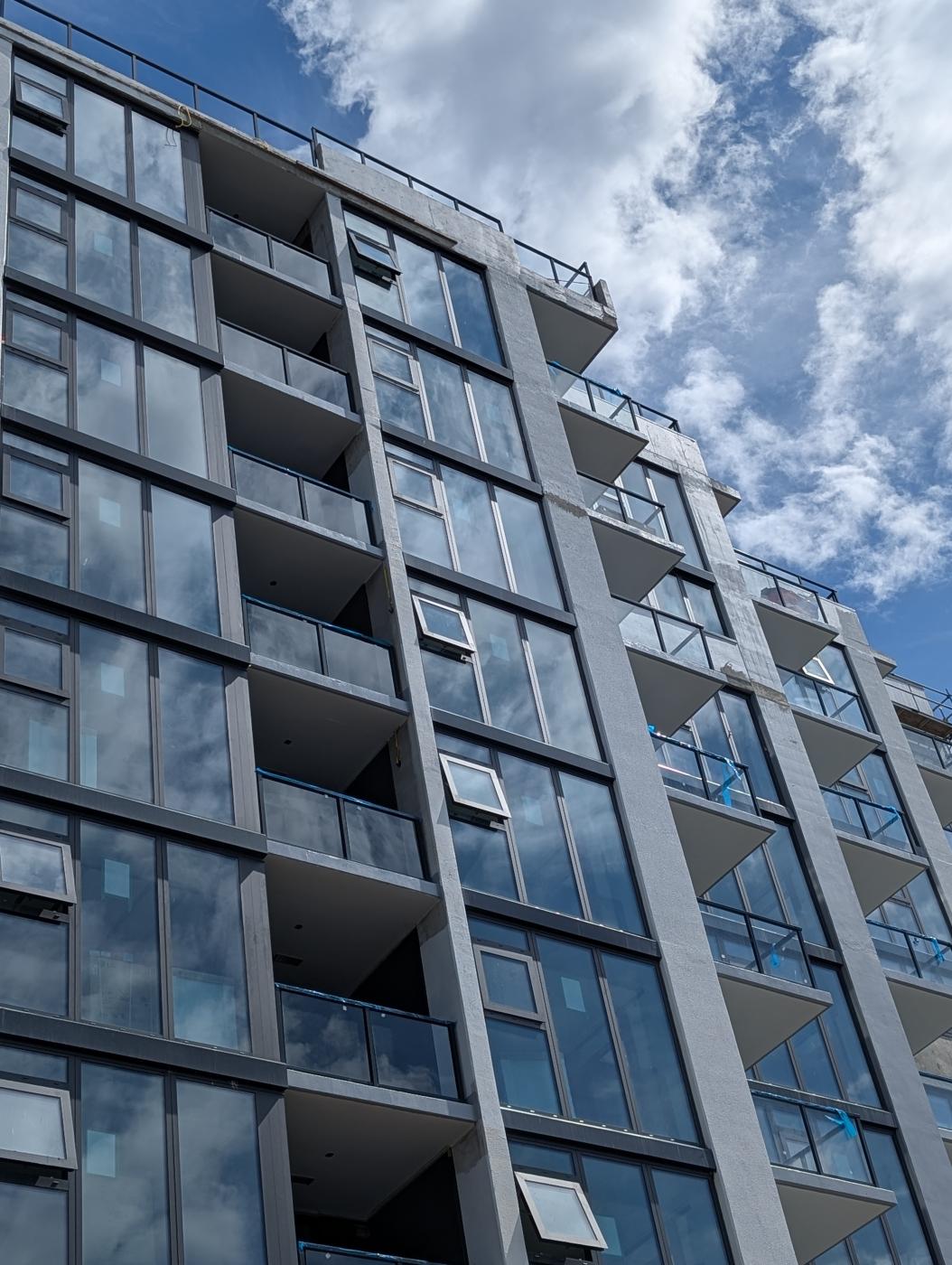 Definitely a lot more activity the last month or two in terms of people on site. All the windows are FINALLY installed on the main residential structure, took forever to get the top floors done for some reason. You can see a lot of interior work has been done too, you can see appliances in many of the lower floors.