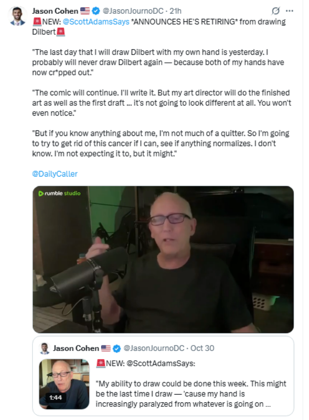 Dilbert creator reveals he has same aggressive cancer as Biden and only has months to live